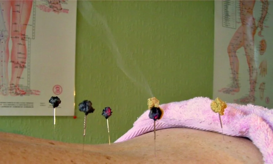 Moxibustion (heat therapy) involves warming acupuncture points using mugwort herb (moxa).✔ Improves circulation & relieves joint pain